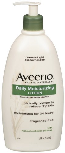 Aveeno Daily Moisturizing Lotion, unlike ordinary lotions, contains natural oatmeal blended with rich emollients to moisturize your skin for a full 24 hours. The unique oatmeal formula of Aveeno also helps prevent and protect dry skin providing temporary relief of the scaling and chapping associated with dry skin. This naturally nourishing, nongreasy formula absorbs quickly, is noncomedogenic (won't clog pores), and contains no added fragrance. Aveeno Daily Moisturizing Lotion leaves your skin soft, smooth and naturally healthy looking. The Aveeno brand has been Dermatologist recommended for nearly 60 years.