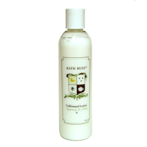 Bath Buzz Caffeinated Lotion is the luxurious lotion with a buzz. Use it in the morning to add a radiant glow to your skin while getting a blast of caffeine. The rosemary-mint caffeinated lotion is refreshing and invigorating, leaving your skin tingling with energy! You get 8 ounces of lotion loaded with caffeine.